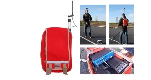 Straight or curved lane markings can be mapped out and plotted to cm-level accuracy when using this survey trolley kit alongside your VBOX 3i ADAS and RTK correction system. The survey trolley comes with a line mapping rover wheel, a custom rucksack, a radio antenna and a battery pack.